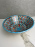 La ciotola presenta un disegno molto dettagliato e intricati motivi geometrici tipici dell'arte marocchina. I colori vibranti e le decorazioni rendono ogni pezzo unico e affascinante.